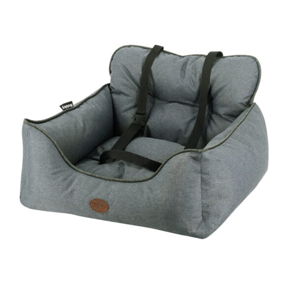 Ein kuscheliger Rückzugsort für Zuhause und auf Reisen. Das Reisebett Kadek ist hierfür ideal, es wird aus wasser- und schmutzabweisendem Stoff in schlichtem grau hergestellt und lässt sich einfach mit einem Befestigungsriemen am Autositz fixieren. Die Füllung aus Watte bietet zusätzlich einen angenehmen Liegekomfort und Anti-Rutsch-Noppen verhindern ein Verrutschen des Bettes. Kadek hat die Maße 55 x 50 x 34 cm und ist waschbar bis 30°C Handwäsche. Bitte achten Sie bei Nutzung im Auto allerdings auf eine vorschriftsmäßige Sicherung ihres Hundes.